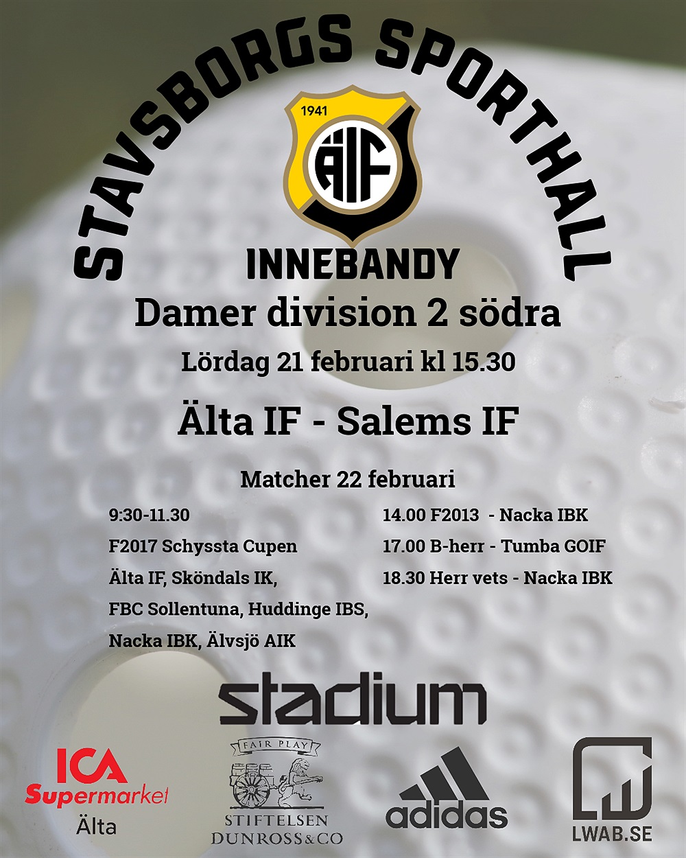 Älta IF herr tar emot serieledarna Tumba GOIF på söndag klockan 18.00. Kom till Stavan och heja fram våra spelare! Våra barn- och ungdomslag spelar under dagen så om du är sugen på bra innebandy så har du chansen att se...