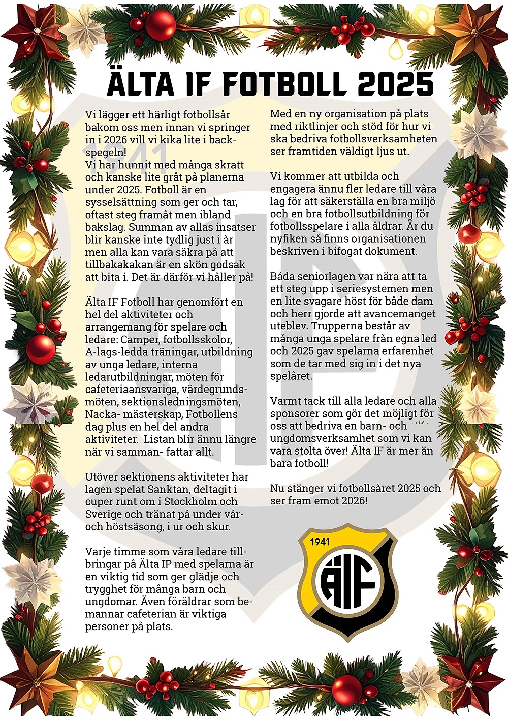 Älta IF Fotboll - Möjlighet till retroaktiv betalning via Fritidskortet