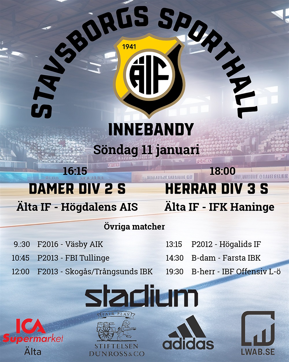 Innebandyns andra halva startar med en fullmatad matchhelg där båda A-lagen spelar hemmamatcher. Några av våra duktiga ungdomslag inleder dagen och alla är välkomna till Stavsborgs sporthall för att se bra innebandy hela dagen.